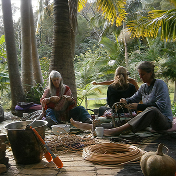 We specialise in practical skills development through education of local fibre identification, harvest, preparation and the development of useful skills used in basketry and woven arts; coil and wrap techniques, twining, rattan and vine basketry, natural dyes and more.
